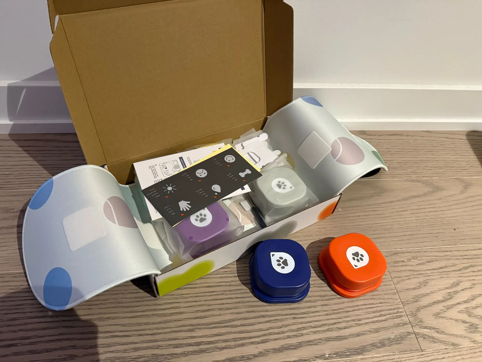 Includes: Communication button + bone sticker & blank sticker or mat