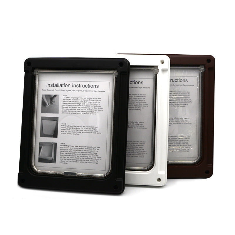 Give your pet easy indoor and outdoor access with this durable plastic pet door fence. Designed for convenience and comfort, it fits most doors and walls while maintaining a secure barrier. Available in white, brown, and black.