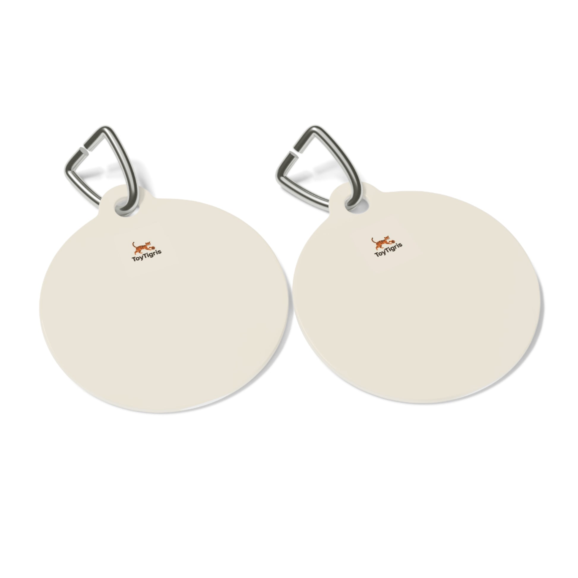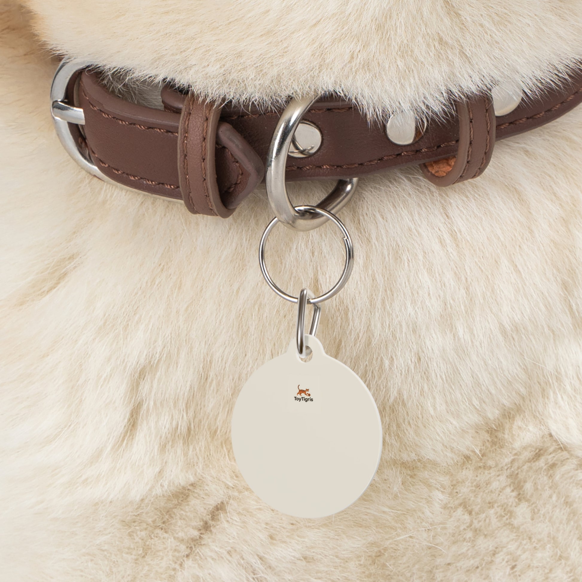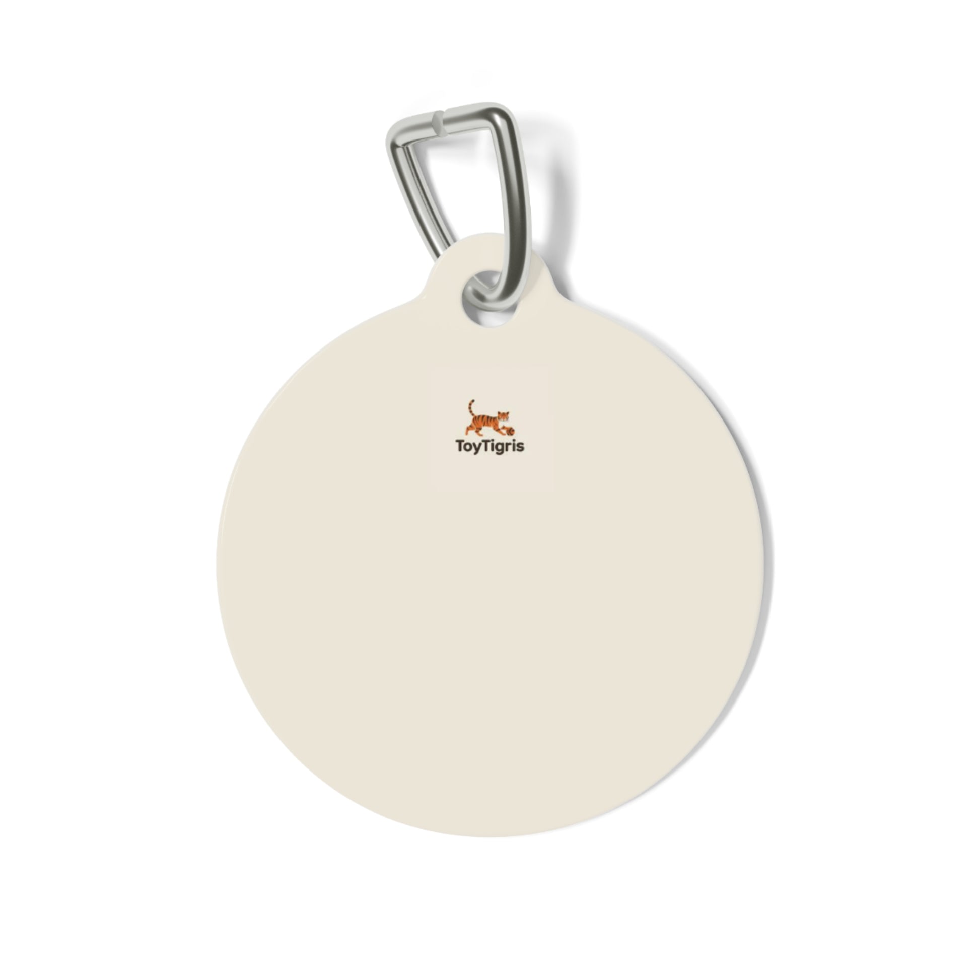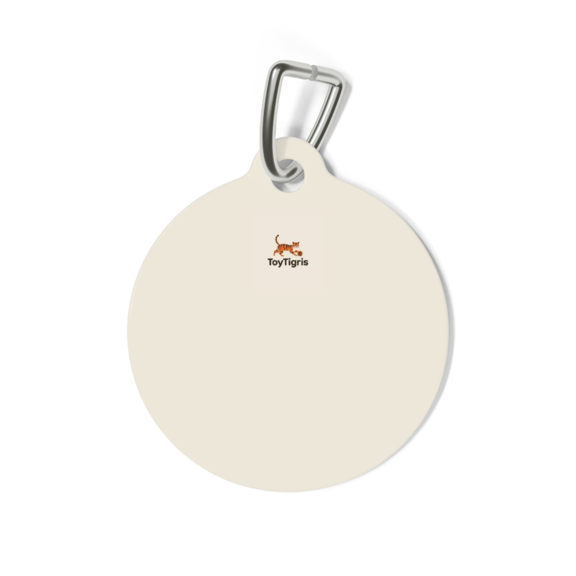 A Toytigris pet tag with a glossy finish, featuring a full-color decoration on both sides. Solid one-piece construction ensures durability. Perfect for pet owners looking to add a stylish accessory to their furry friend's collar. Ideal for pet lovers celebrating their furry companion's birthday, Gotcha Day, or just wanting to show off their pet's personality.